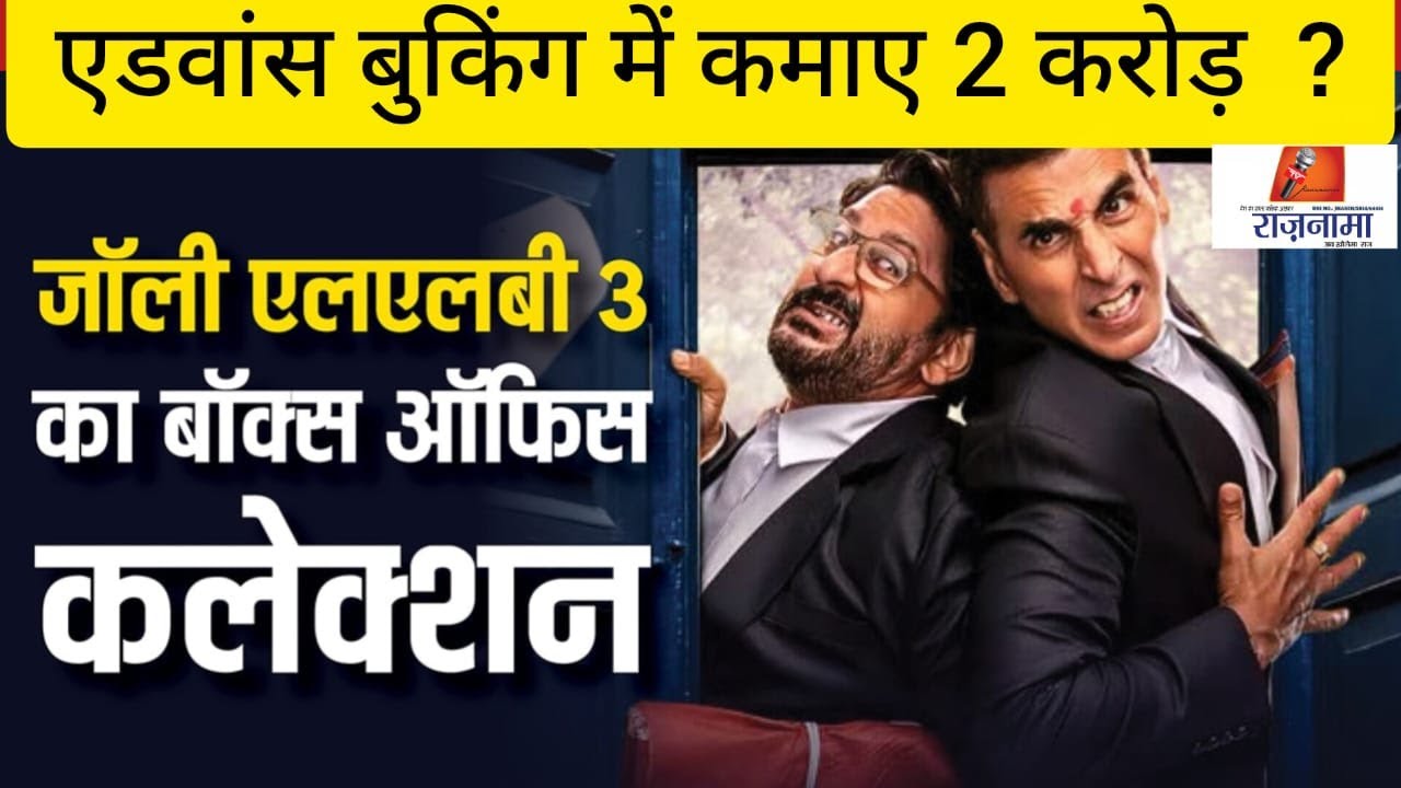 ‘जॉली एलएलबी 3’ का ट्रेलर आने के बाद से सोशल मीडिया यूजर्स में फिल्म का क्रेज साफ देखा जा रहा है. लोगों में इस फिल्म को लेकर कितना उत्साह है, इसका अंदाजा इस बात से लगाया जा सकता है कि रिलीज से पहले ही फिल्म ने एडवांस बुकिंग के तौर पर करोड़ों रुपए जुटा लिए हैं. फिल्म 19 सितंबर को सिनेमाघरों में दस्तक देने जा रही है. रिलीज से पहले ही जमकर टिकट बुकिंग हो रही है.